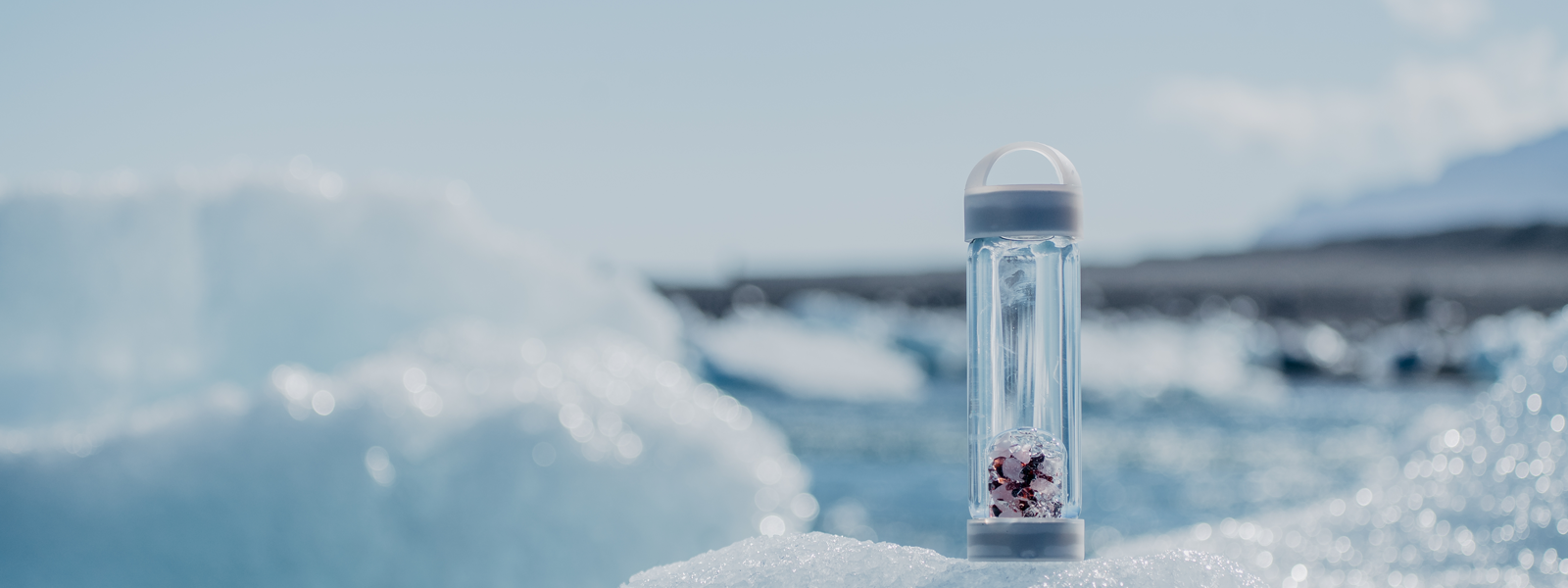 Enjoy with water or wine, the Phiolino is a perfect companion. Where ever you are, with crystal quartz granules, a fiery garnet and an exquisite amethyst....